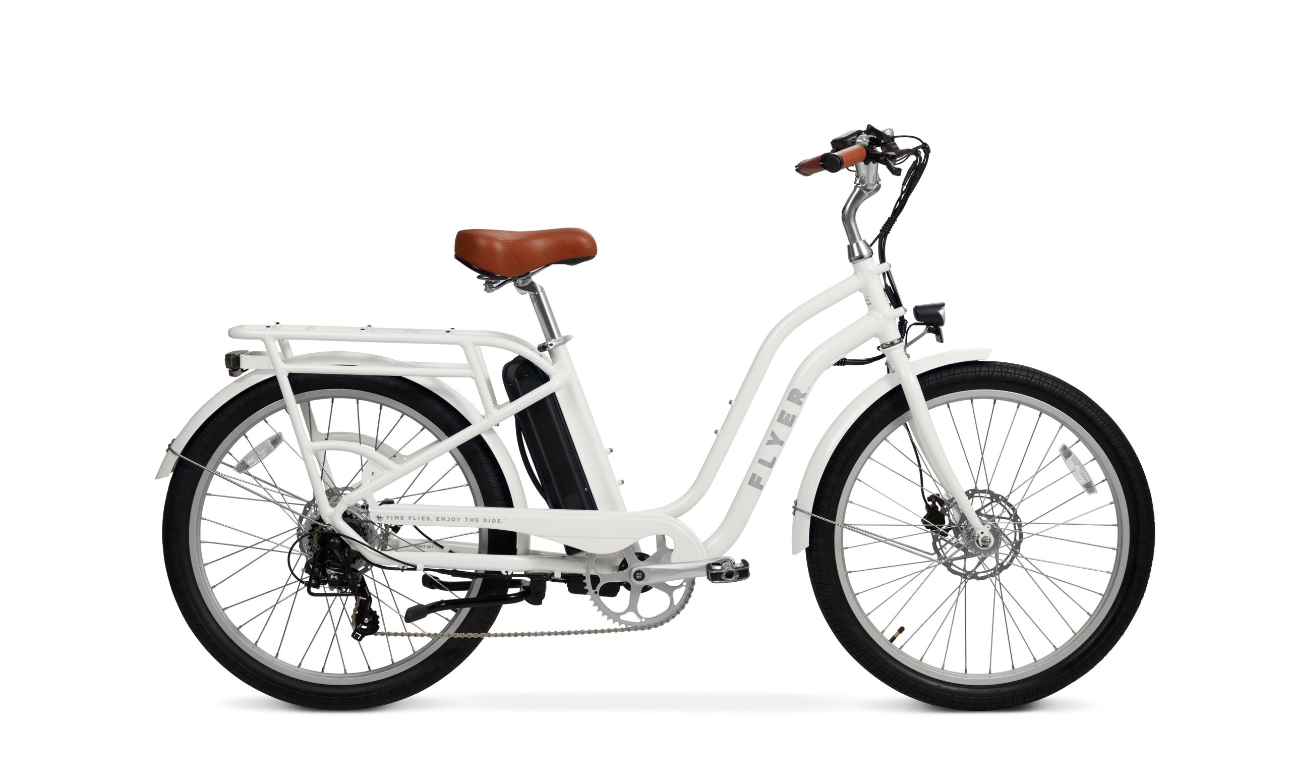 Enjoy the comfort features of a cruiser and the on-demand power of an electric bike with the Flyer??? Cruiser Step-Thru 2.0. The low step-thru frame design ensures easy on and off for riders. Whether you’re hitting the beach. taking a trip to the park. or checking errands off your list around town. cruise in comfort with kids & cargo in tow. For riders 16 years of age and older.